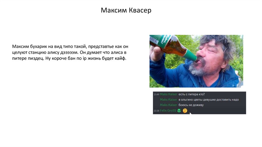 Максим КвасерМаксим бухарик на вид типо такой, представтье как он