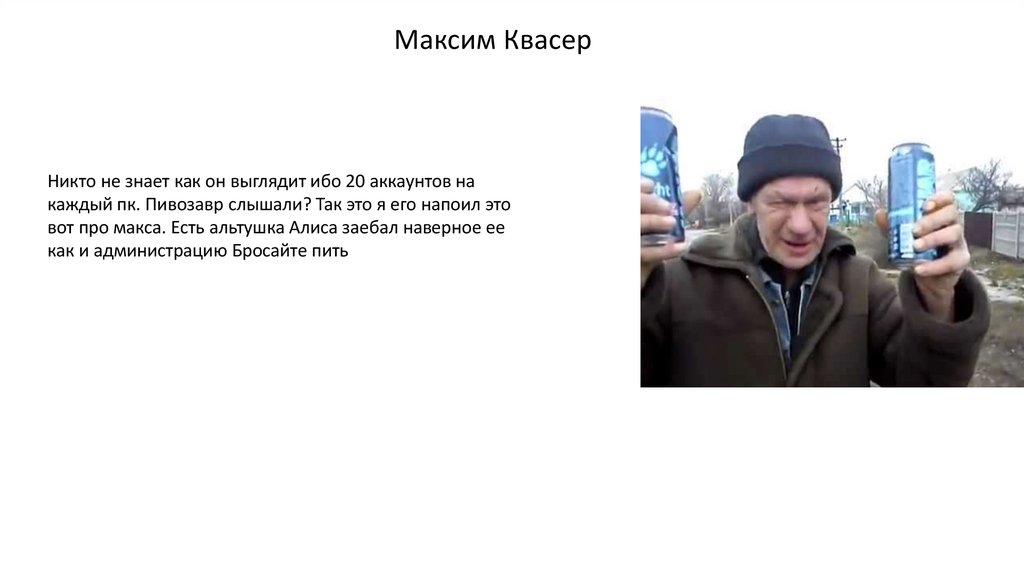 Максим КвасерНикто не знает как он выглядит ибо 20 аккаунтов на