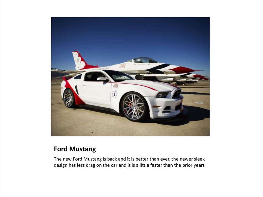 The new Ford Mustang is back and it is better than ever, the newer sleekdesign has less drag on the car and it is a little faster than the prior years