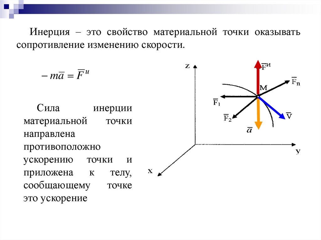 Инерция – это свойство материальной точки оказыватьсопротивление изменению скорости.