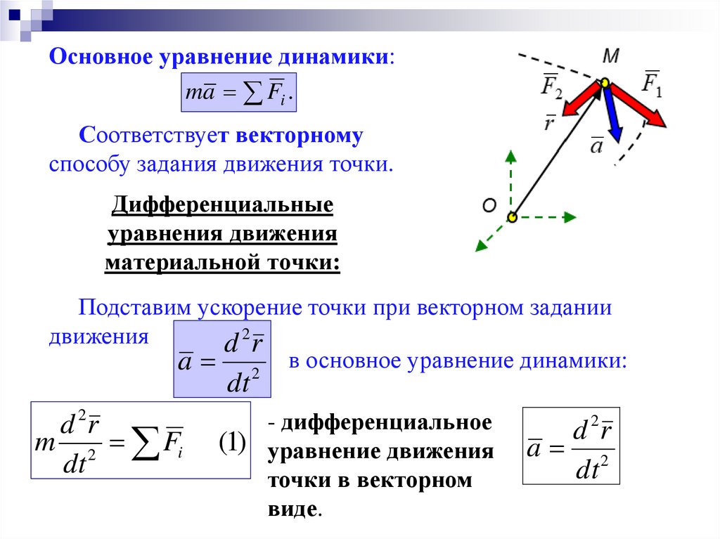 пропорционально массе этой точки. Основное уравнение