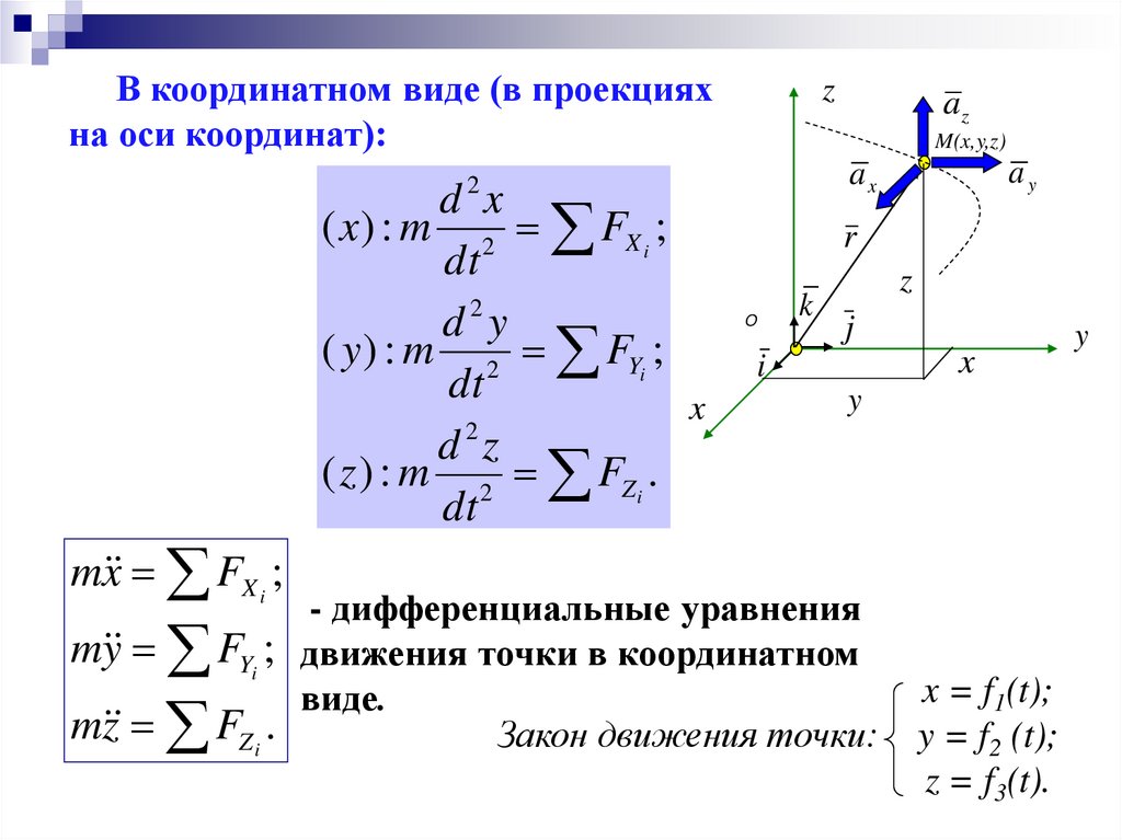 В координатном виде (в проекцияхна оси координат):