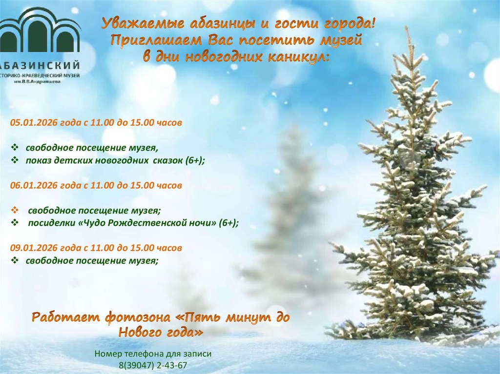05.01.2026 года с 11.00 до 15.00 часовсвободное посещение музея,