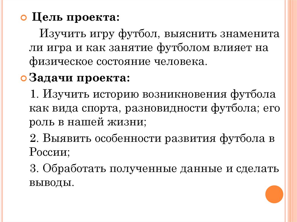 Цель проекта:Изучить игру футбол, выяснить знаменита