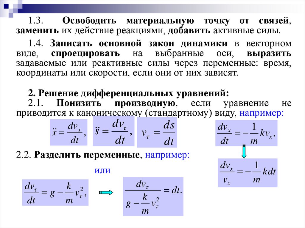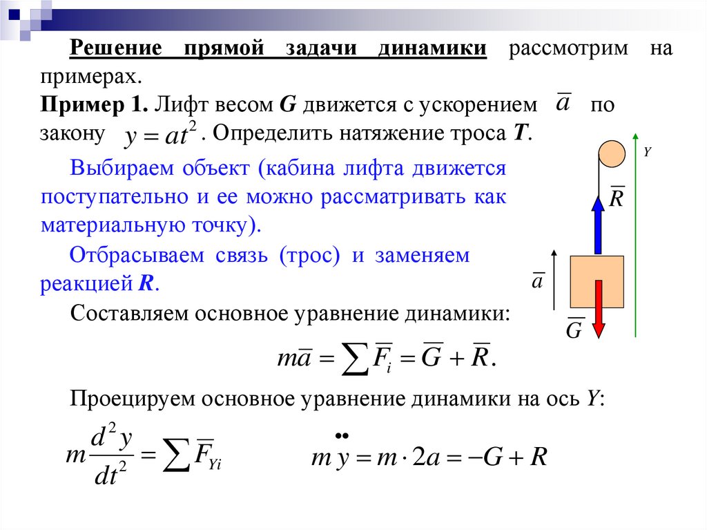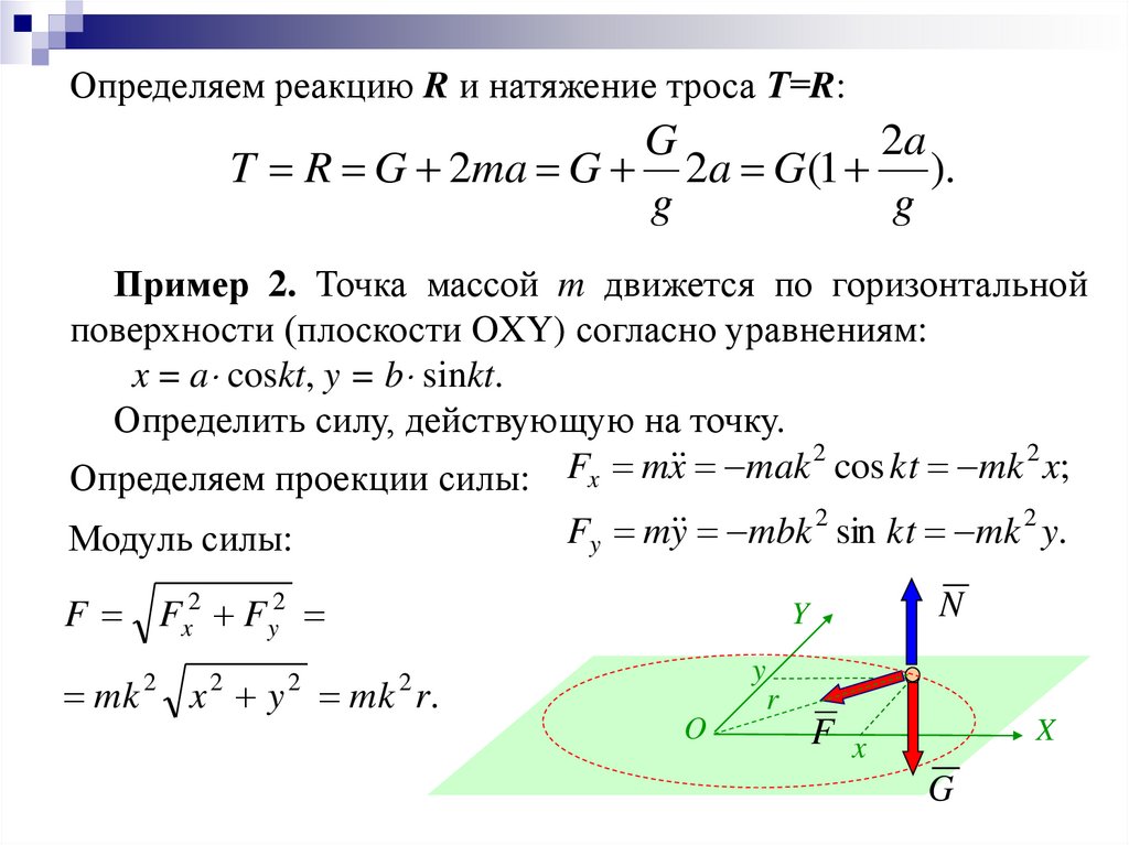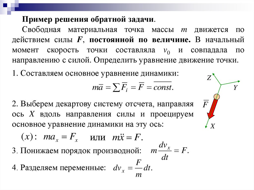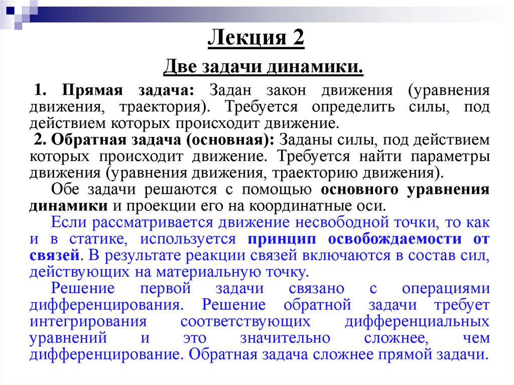 Две задачи динамики.1. Прямая задача: Задан закон движения (уравнения