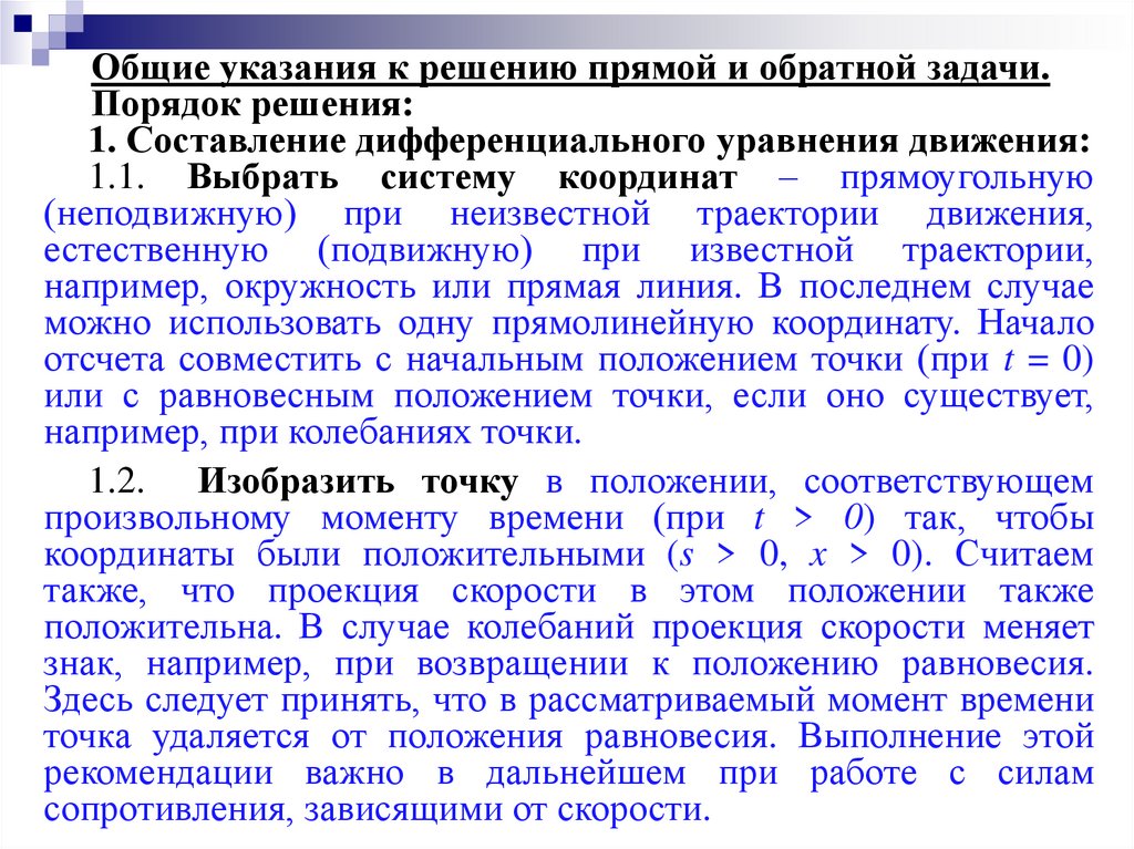 Общие указания к решению прямой и обратной задачи.Порядок решения: