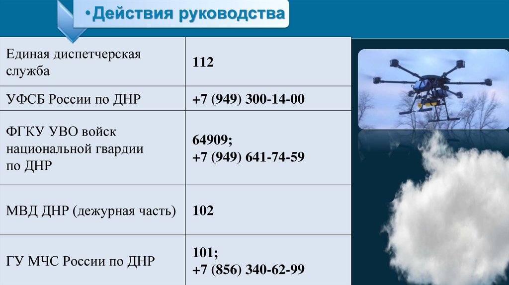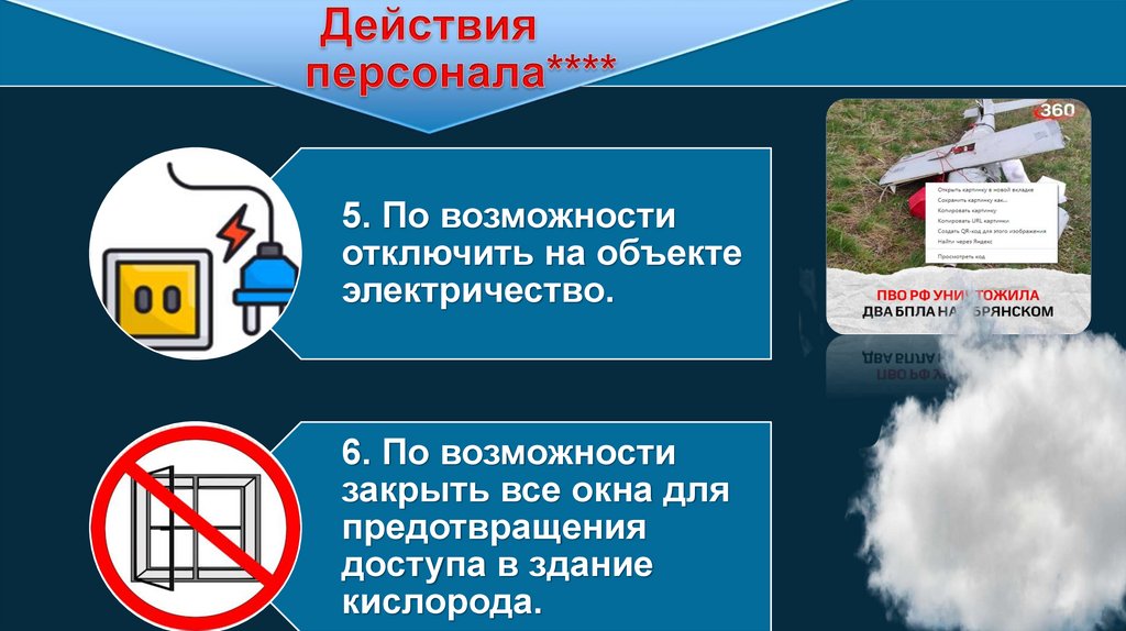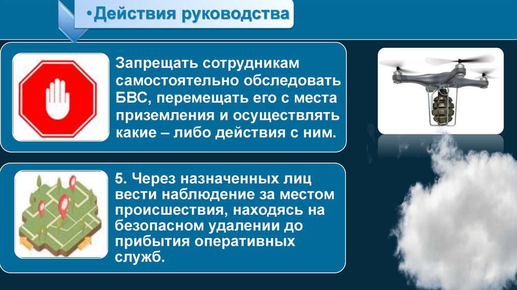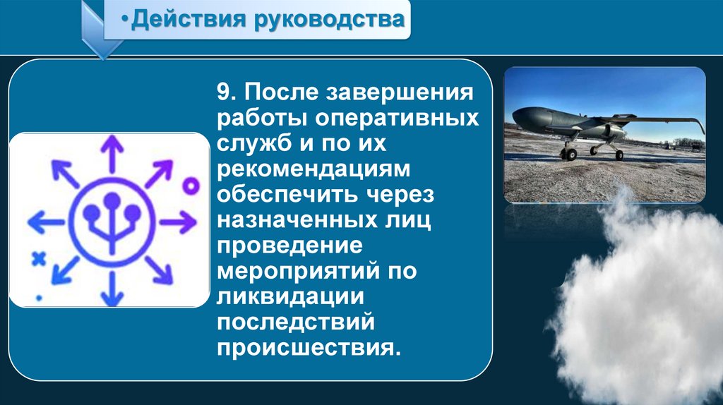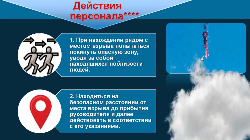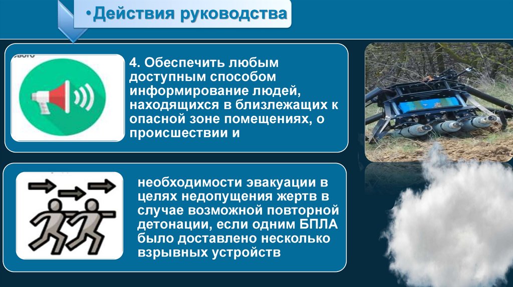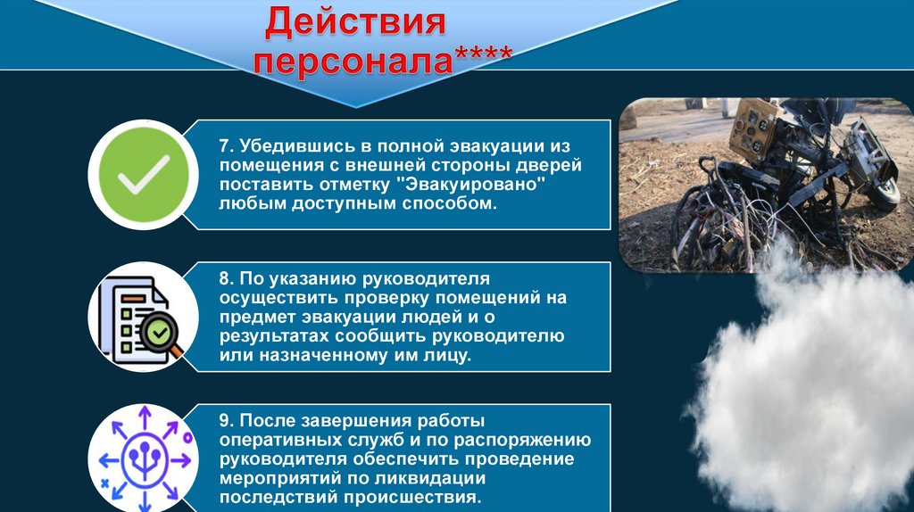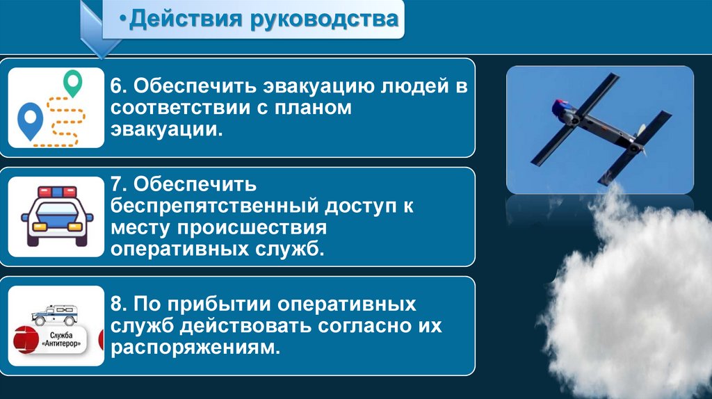 • Действия руководства6. Обеспечить эвакуацию людей в