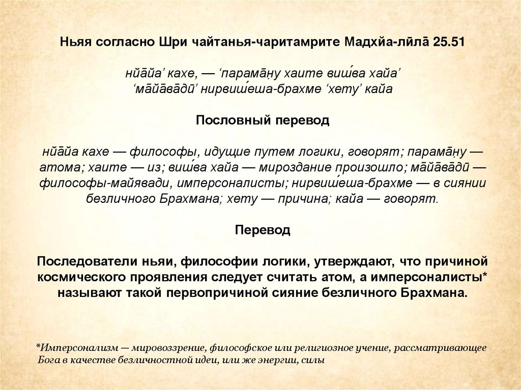 Вед, а Брахма-сутра – ньяйя-прастхана, тексты, в которых философия