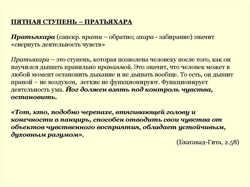 ПЯТНАЯ СТУПЕНЬ – ПРАТЬЯХАРАПратьяхара (санскр. прати – обратно; ахара - забирание) значит