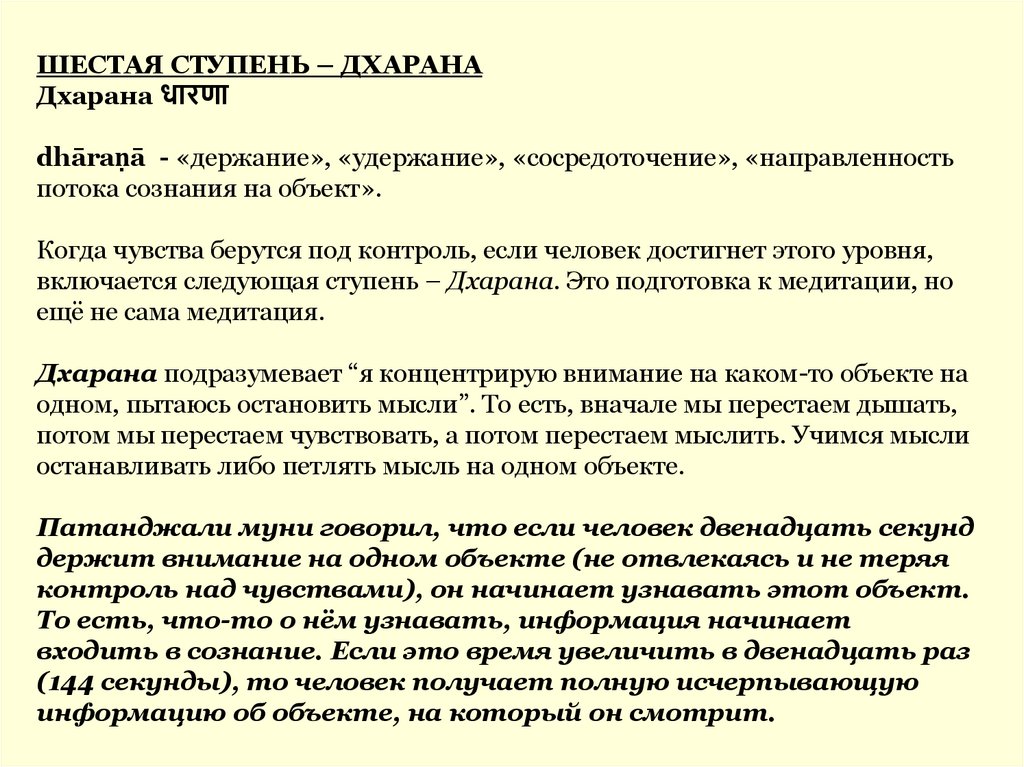 ШЕСТАЯ СТУПЕНЬ – ДХАРАНАДхарана धारणा