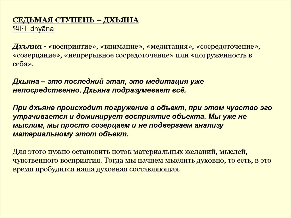 СЕДЬМАЯ СТУПЕНЬ – ДХЬЯНАध्याि, dhyāna