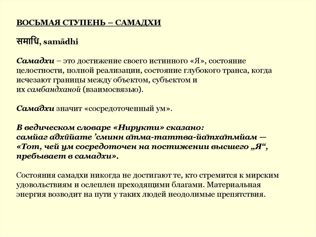 ВОСЬМАЯ СТУПЕНЬ – САМАДХИसमाधध, samādhi