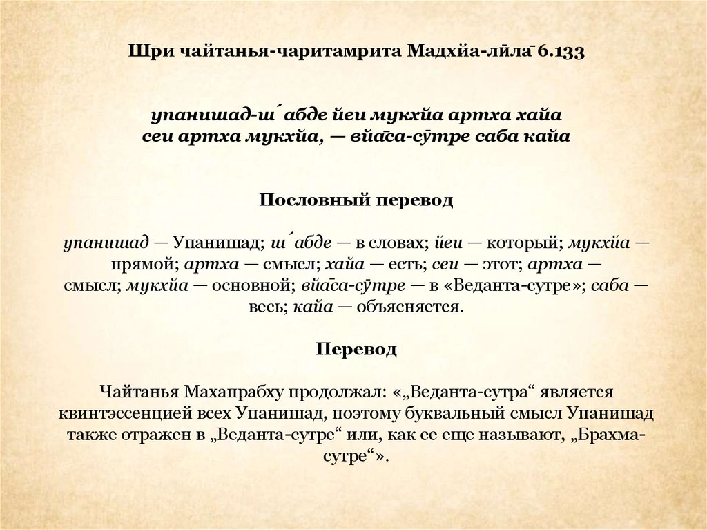 Шри чайтанья-чаритамрита Мадхйа-лӣла̄ 6.133упанишад-ш́абде йеи мукхйа артха хайа