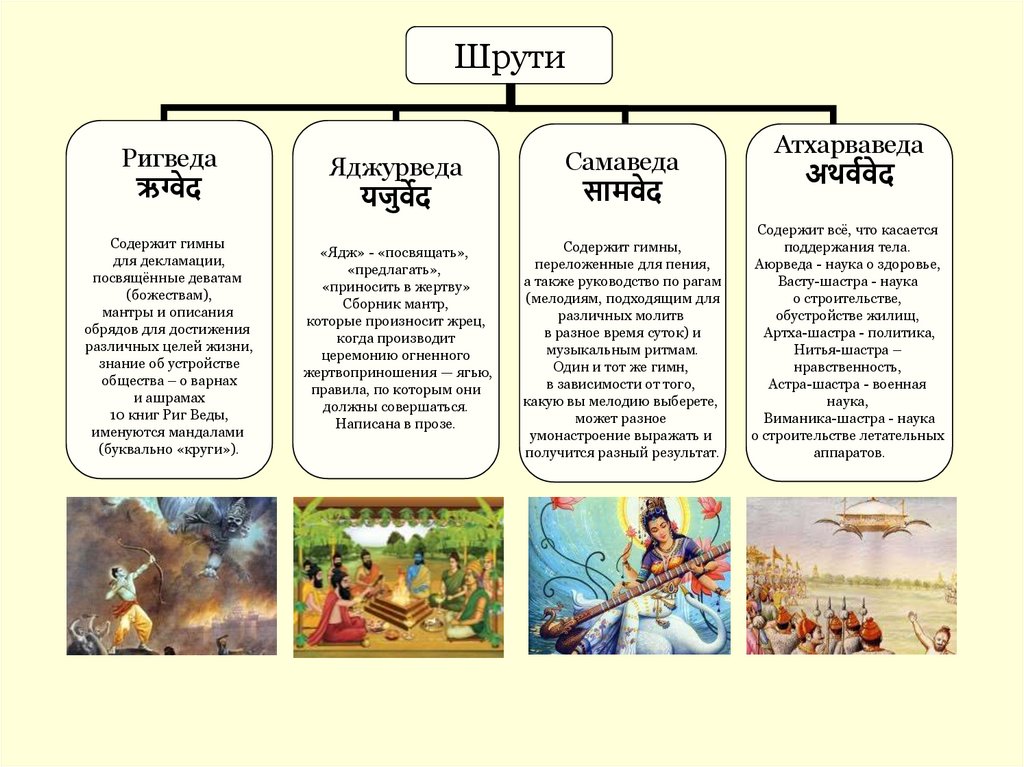«Яджур-» и «Сама-веды» на четыре части, подобно тому как