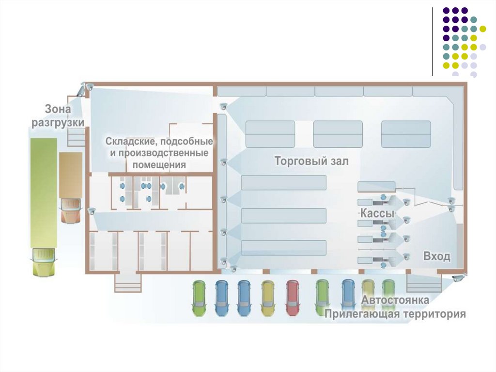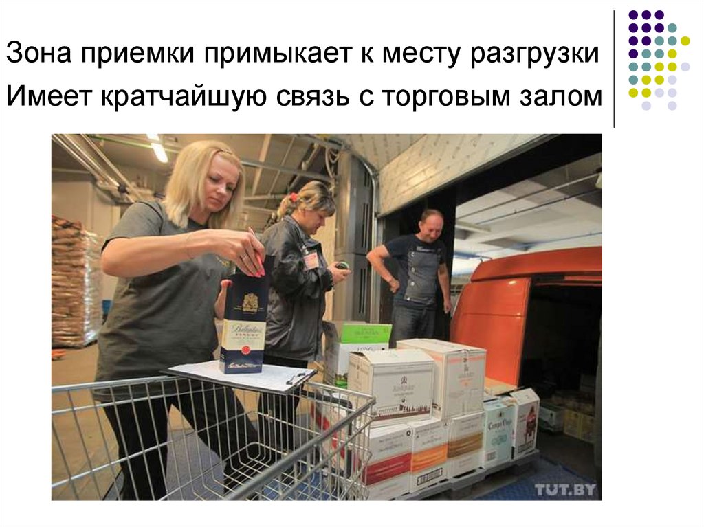 Зона приемки примыкает к месту разгрузкиИмеет кратчайшую связь с торговым залом