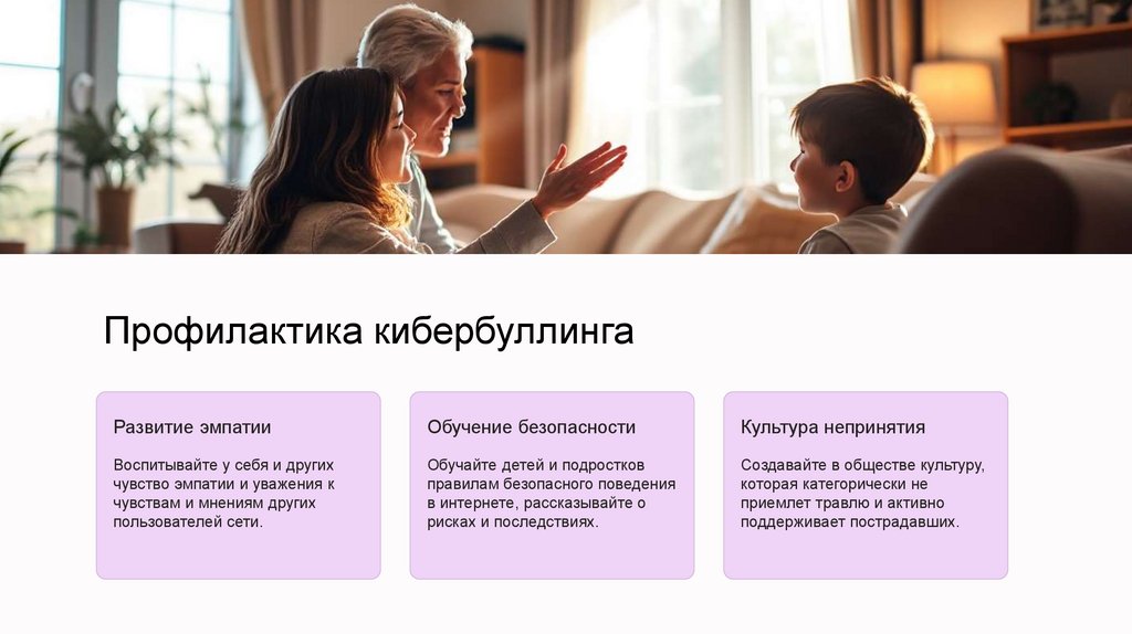 Крайне важно открыто говорить о кибербуллинге, оказывать поддержку друг другу и проявлять максимальную внимательность в