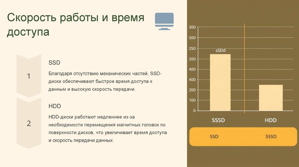 Благодаря отсутствию механических частей, SSDдиски обеспечивают быстрое время доступа к
