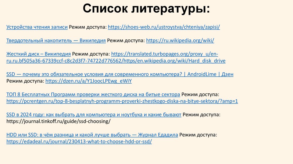Список литературы:Устройства чтения записи Режим доступа: https://shoes-web.ru/ustroystva/chteniya/zapisi/