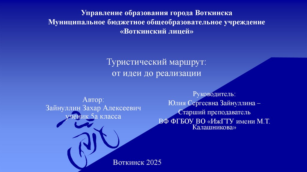 1. Управление образования города Воткинска Муниципальное бюджетное общеобразовательное учреждение «Воткинский лицей» Туристический
