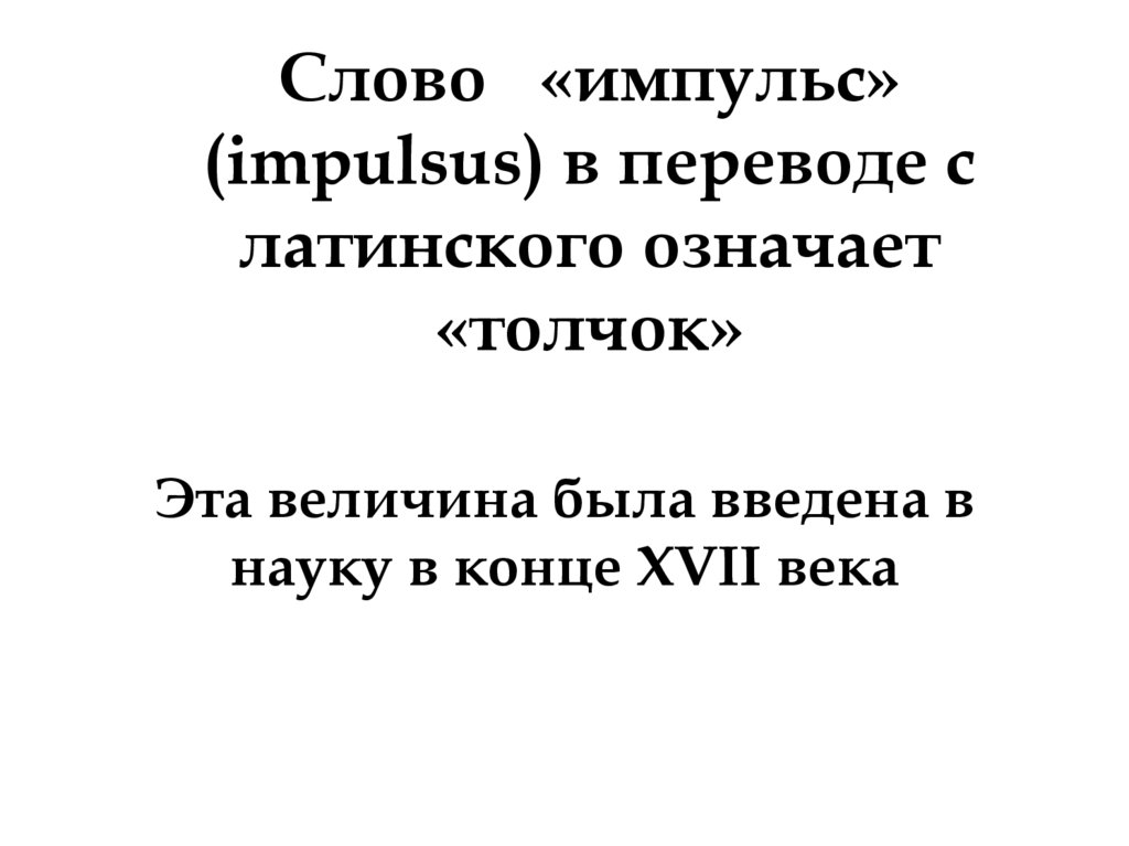 Слово «импульс»(impulsus) в переводе с