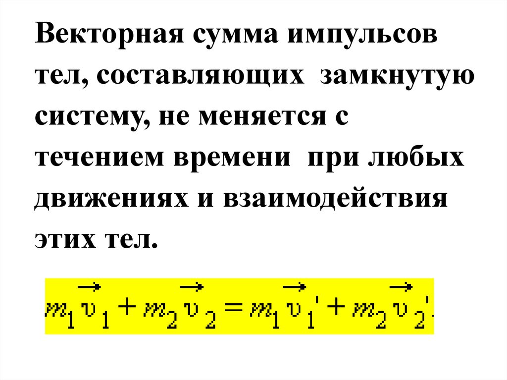 Сумма импульсов тел до взаимодействияравна сумме импульсов тел после