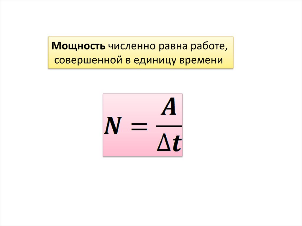 Мощность численно равна работе,совершенной в единицу времени