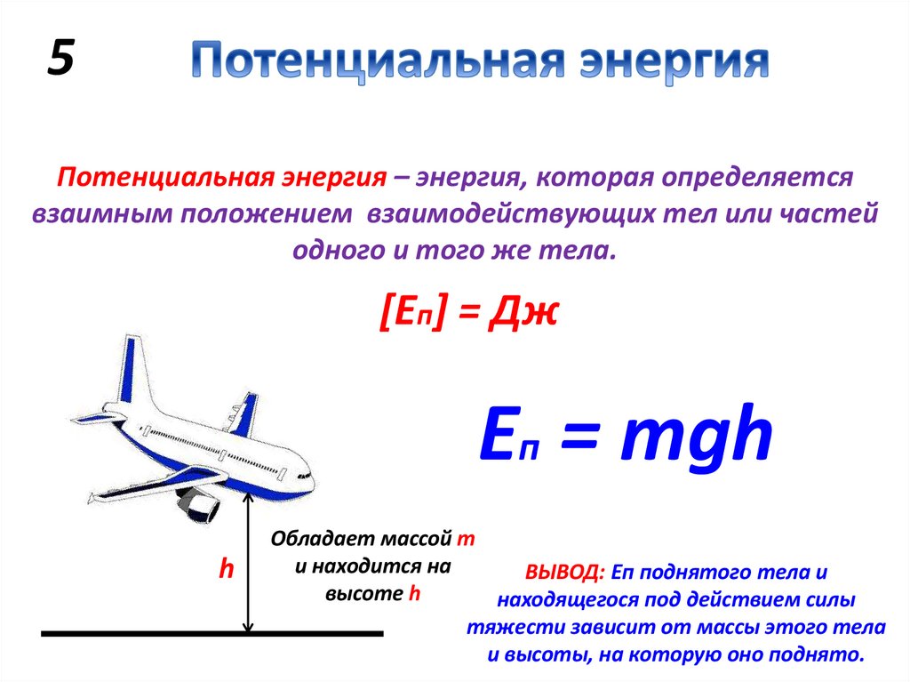 5Потенциальная энергия – энергия, которая определяется