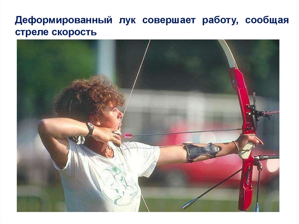 Деформированный лук совершает работу, сообщаястреле скорость