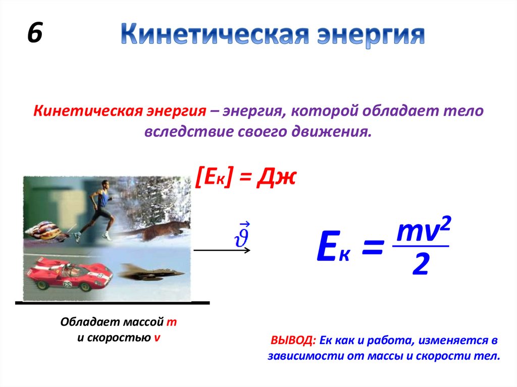 6Кинетическая энергия – энергия, которой обладает тело