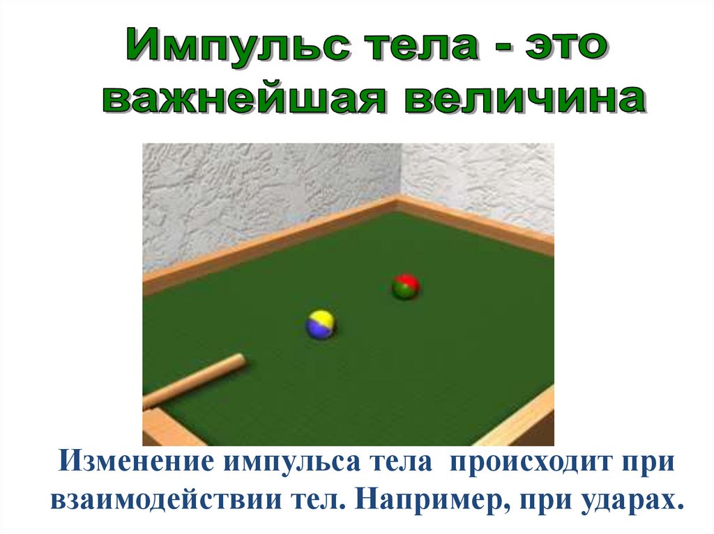 Изменение импульса тела происходит привзаимодействии тел. Например, при ударах.