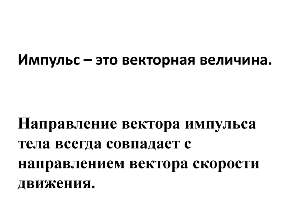 Импульс – это векторная величина.Направление вектора импульса