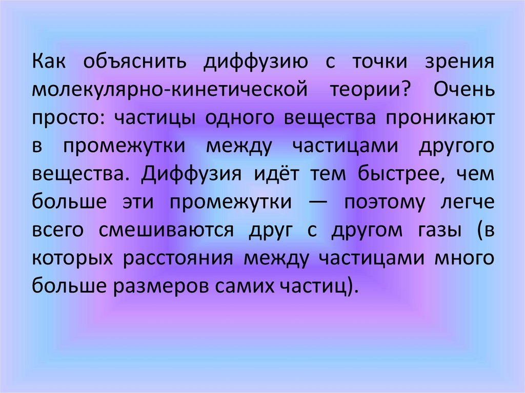 Как объяснить диффузию с точки зрениямолекулярно-кинетической теории? Очень