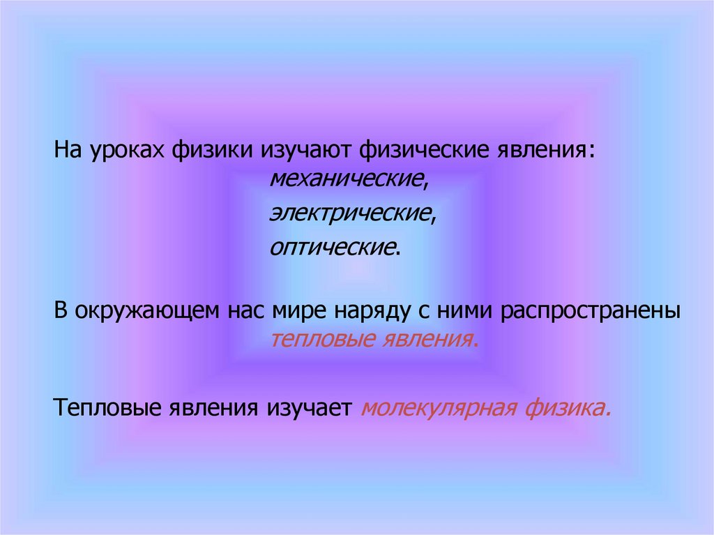 На уроках физики изучают физические явления:механические,