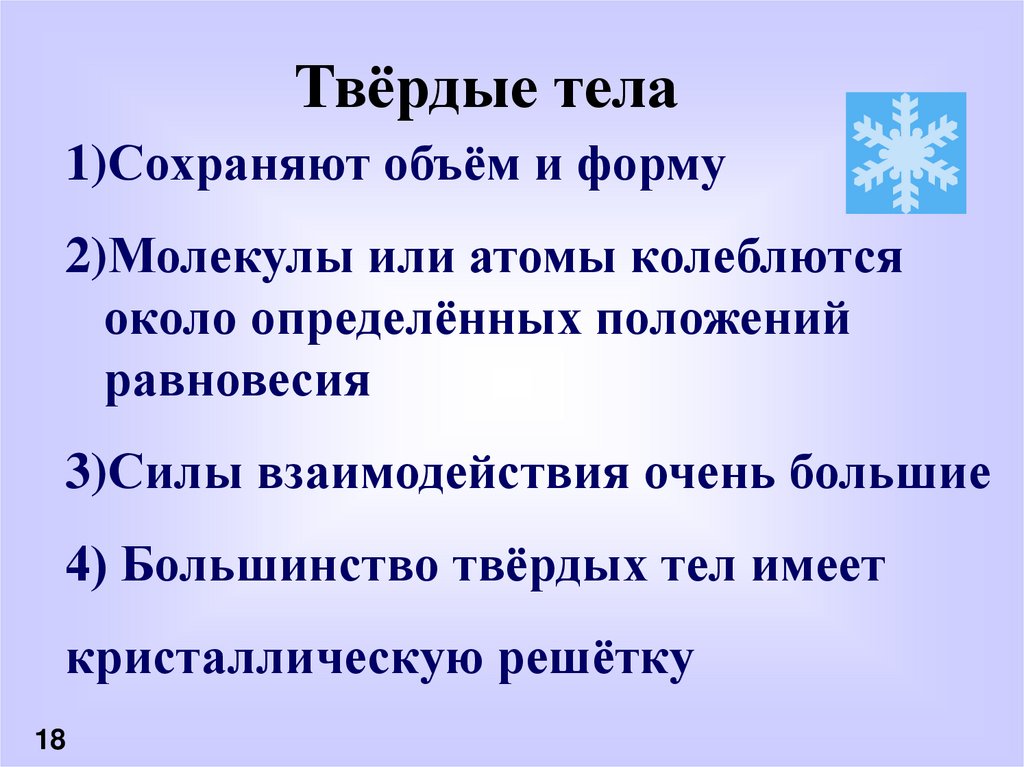 4) Большинство твёрдых тел имеет