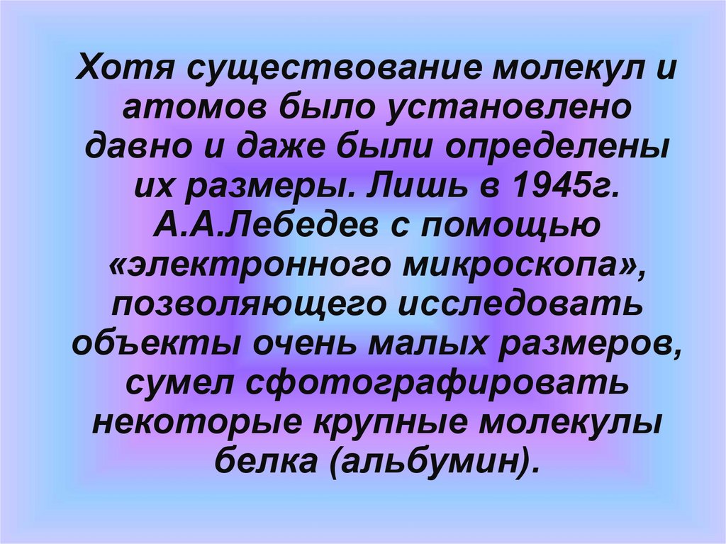 Хотя существование молекул иатомов было установлено