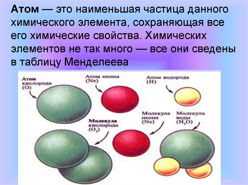 Атом — это наименьшая частица данногохимического элемента, сохраняющая все