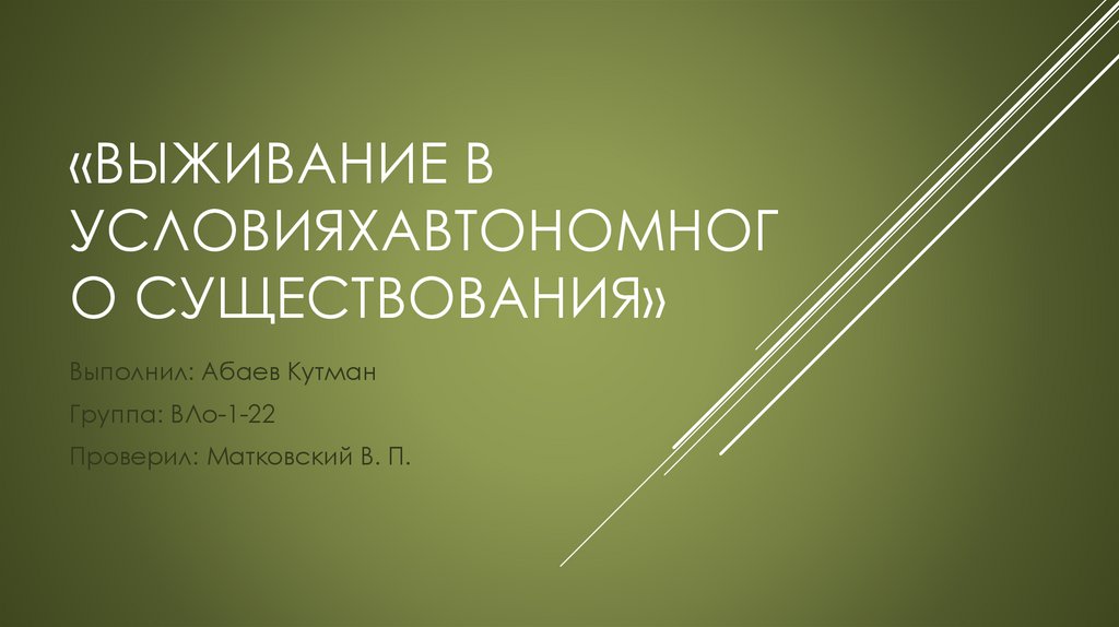 «ВЫЖИВАНИЕ ВУСЛОВИЯХАВТОНОМНОГ