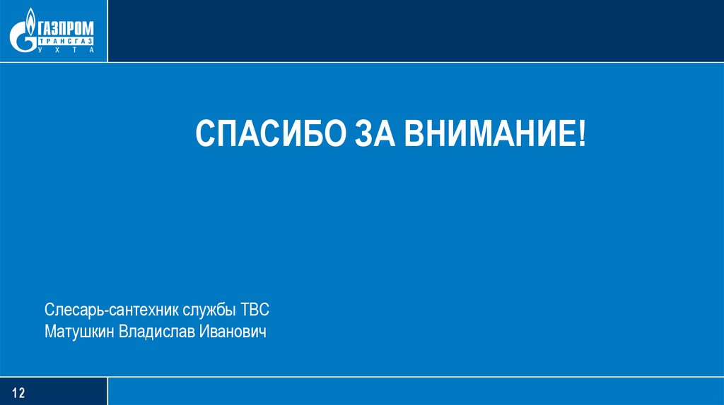 СПАСИБО ЗА ВНИМАНИЕ!Слесарь-сантехник службы ТВС