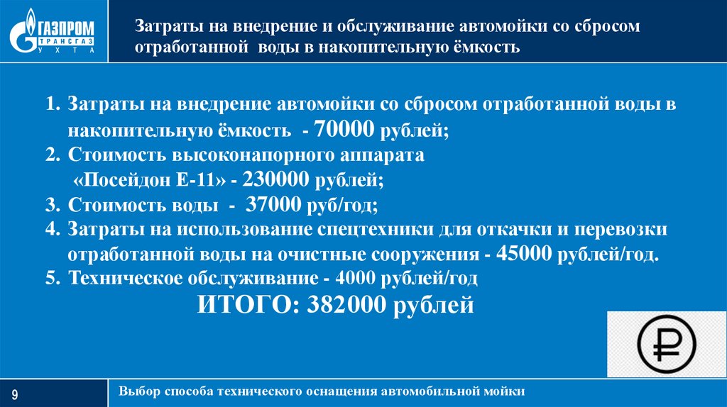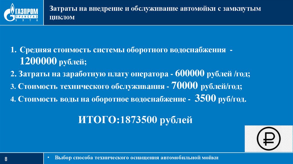 Затраты на внедрение и обслуживание автомойки с замкнутымциклом