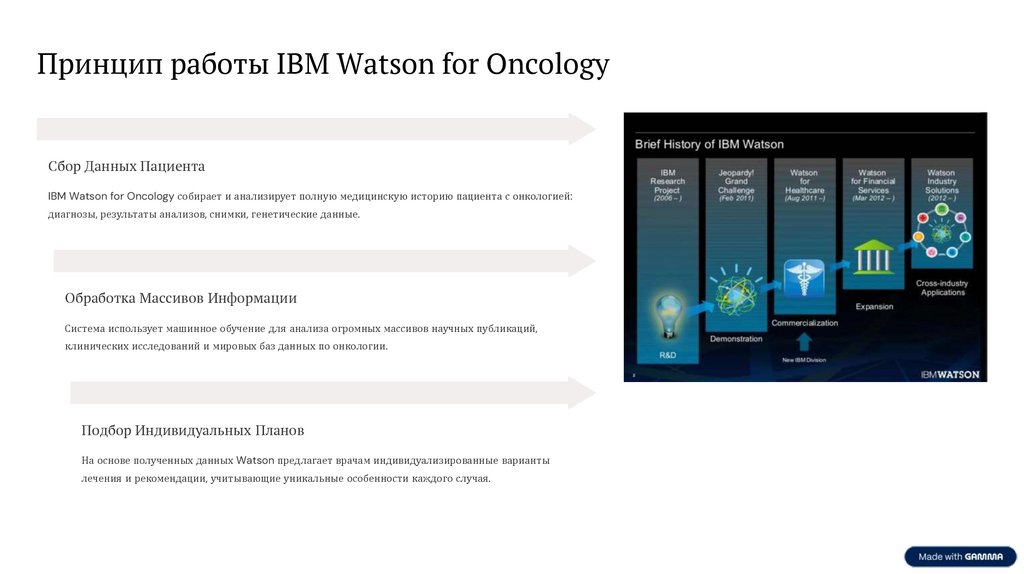На основе полученных данных Watson предлагает врачам индивидуализированные варианты