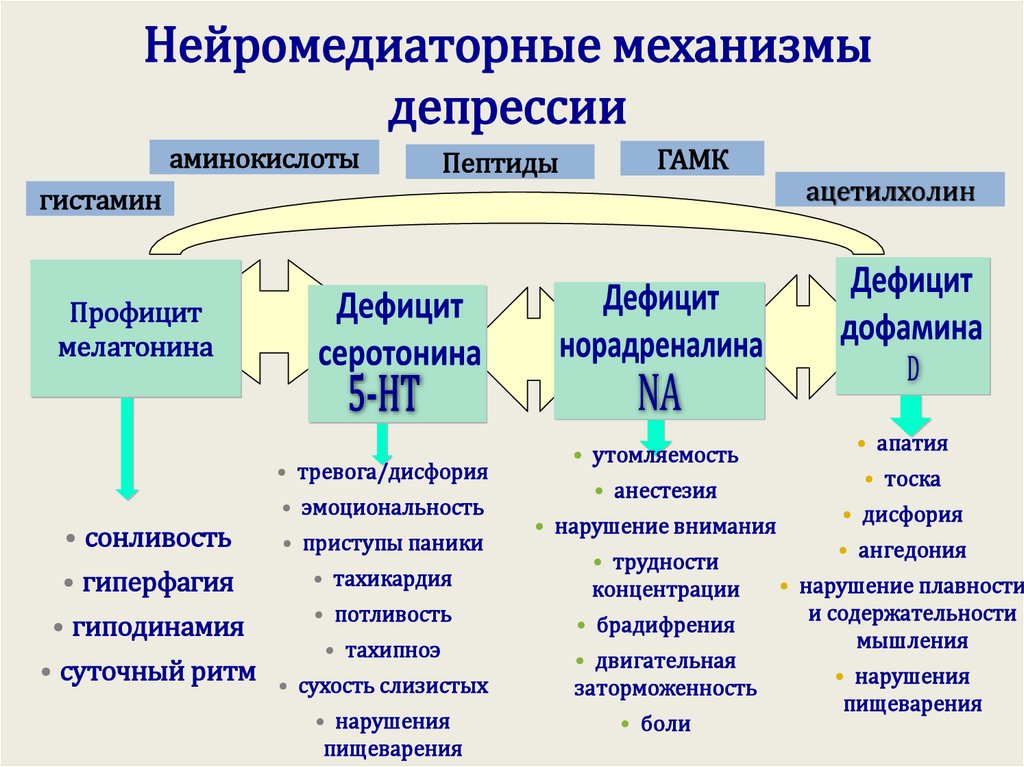 Мезокортикальный и Мезолимбический дофаминовые путиГипоактивность