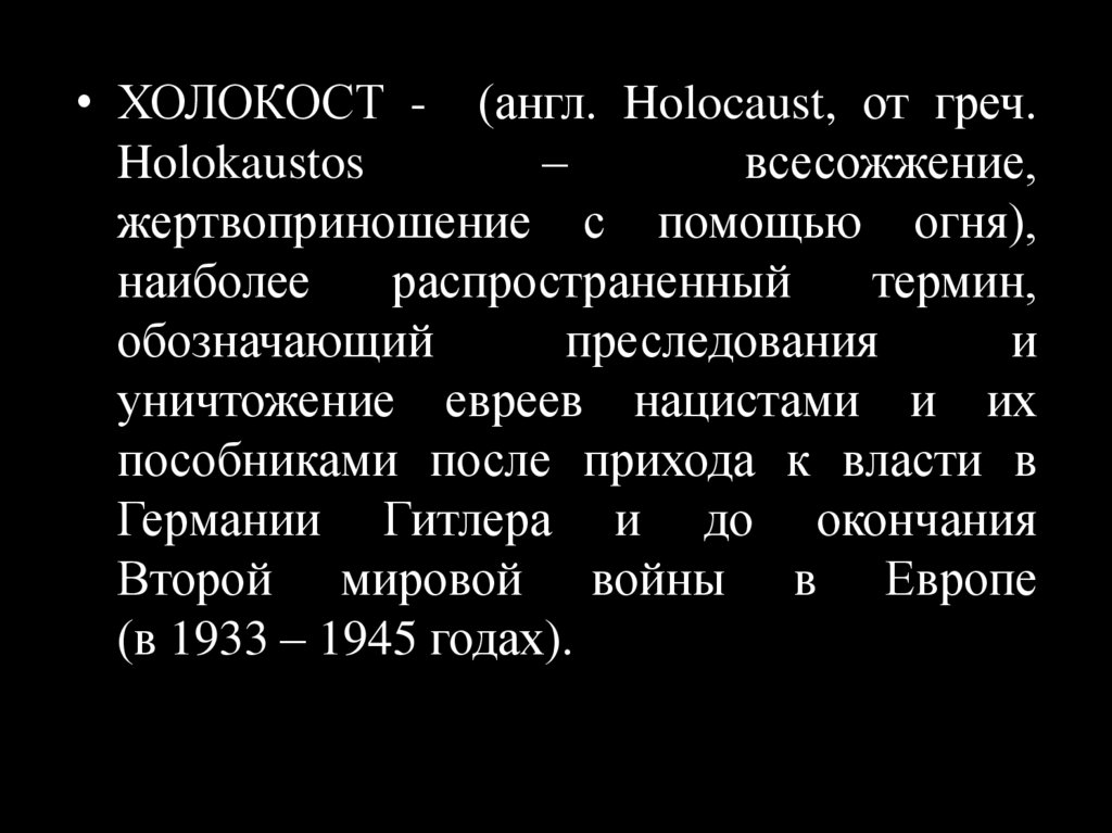 • ХОЛОКОСТ - (англ. Holocaust, от греч.Holokaustos