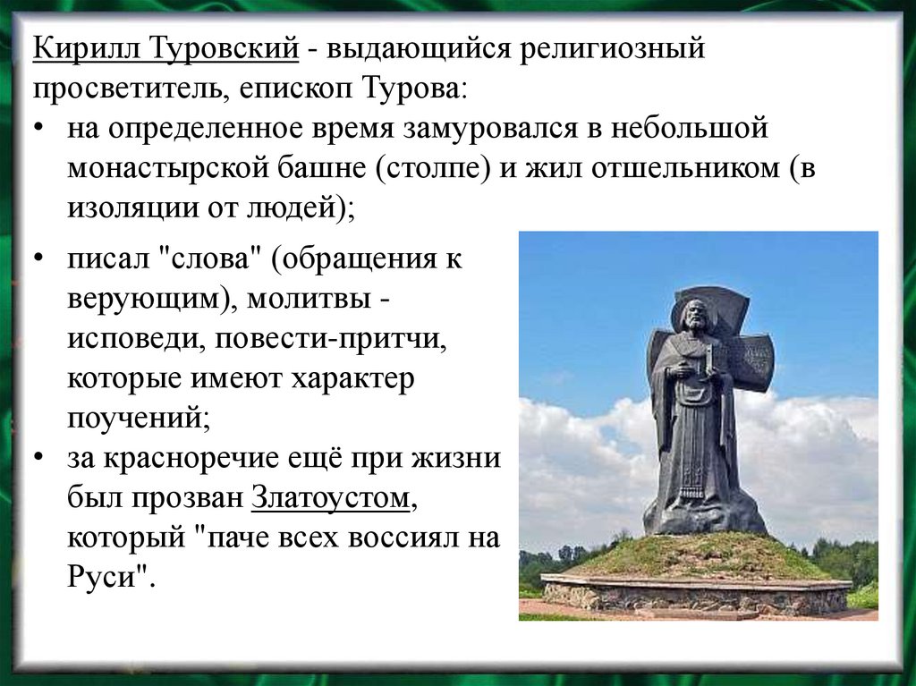 Кирилл Туровский - выдающийся религиозныйпросветитель, епископ Турова:
