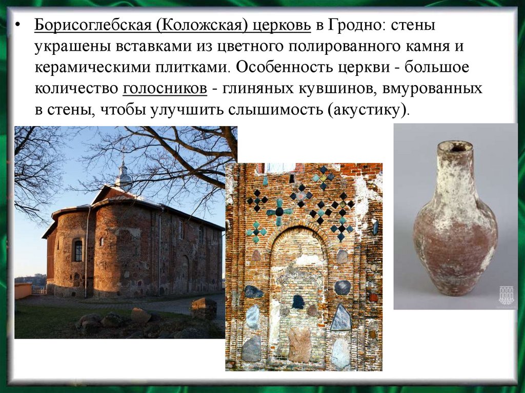 • Борисоглебская (Коложская) церковь в Гродно: стеныукрашены вставками из цветного полированного камня и