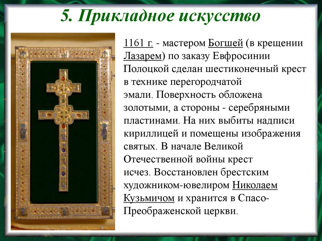 5. Прикладное искусство1161 г. - мастером Богшей (в крещении