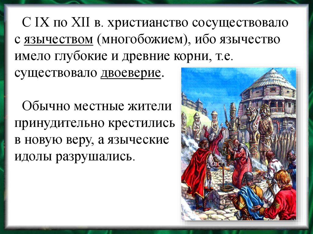 С ІX по ХІІ в. христианство сосуществовалос язычеством (многобожием), ибо язычество
