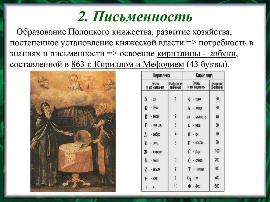2. ПисьменностьОбразование Полоцкого княжества, развитие хозяйства,