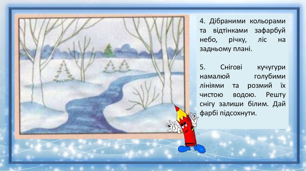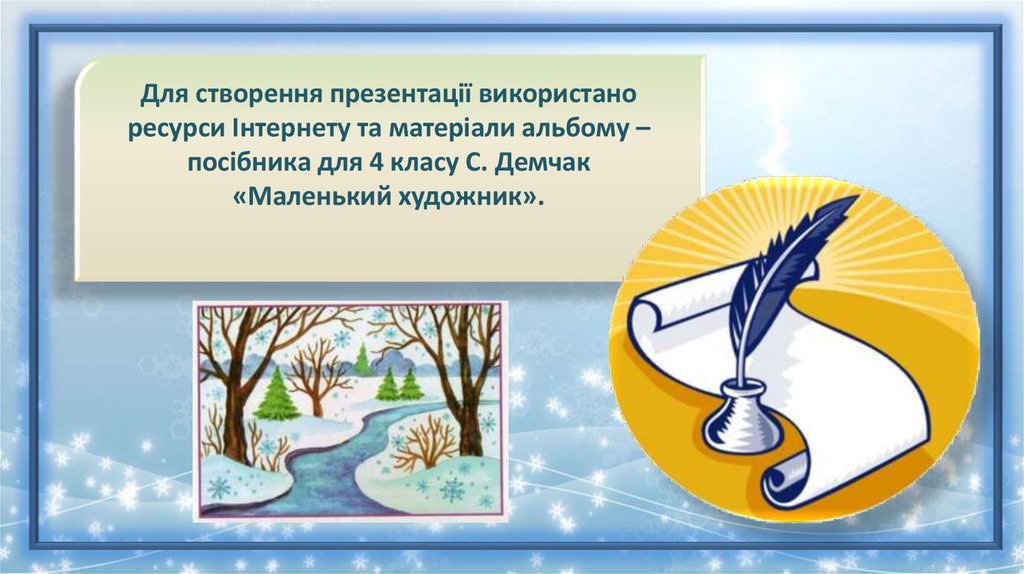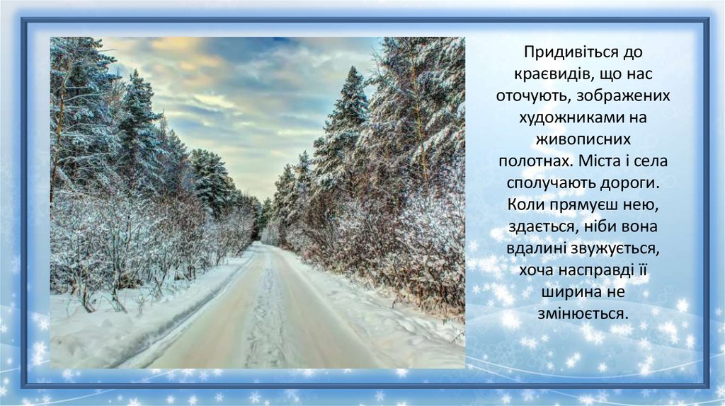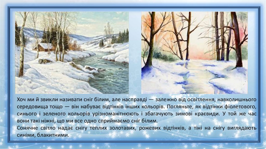 синього і зеленого кольорів урізноманітнюють і збагачують зимові краєвиди. У той же час