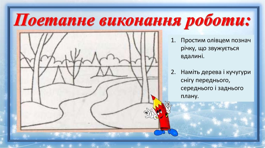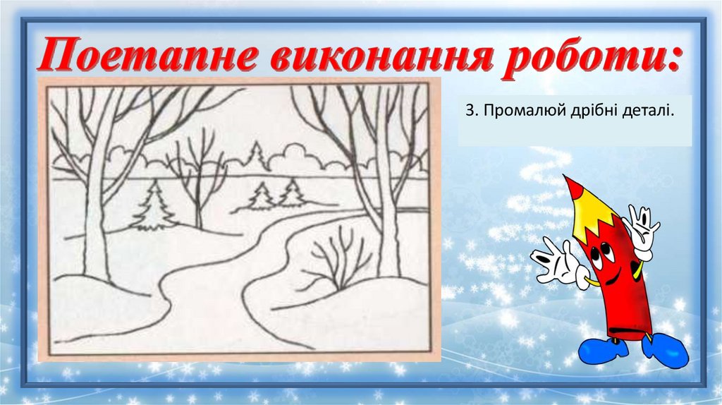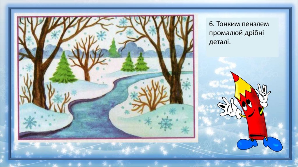 небі – ні хмаринки. Сніг, який ішов всю ніч, закутав землю білим пухнастим покривалом. Дерева стоять у важких білих