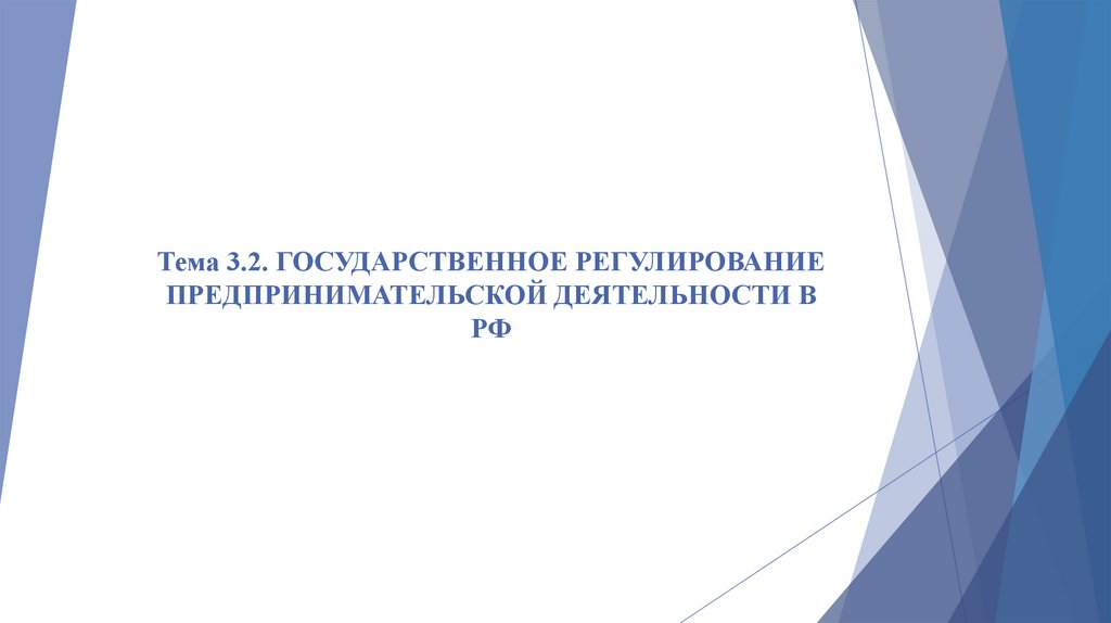 1. Тема 3.2. ГОСУДАРСТВЕННОЕ РЕГУЛИРОВАНИЕ ПРЕДПРИНИМАТЕЛЬСКОЙ ДЕЯТЕЛЬНОСТИ В РФ